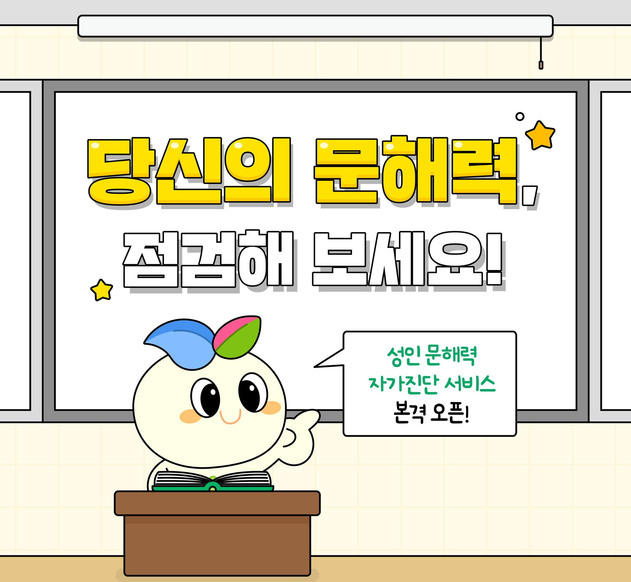 국가문해교육센터에서는 누구나 무료로 자신의 문해능력을 진단하고 학습할 수 있도록 '성인문해력 자가진단 서비스'를 제공합니다.