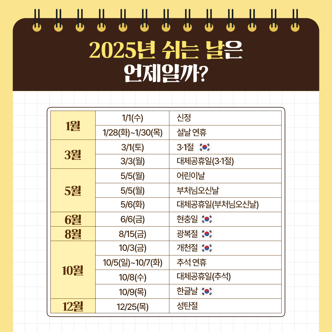 2025년은 대체 공휴일로 인해 여러 황금연휴가 포함된 특별한 해입니다.