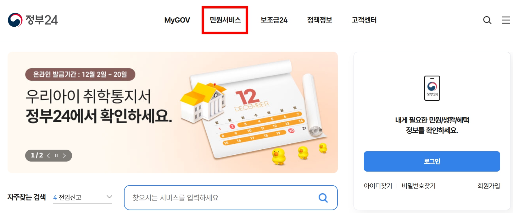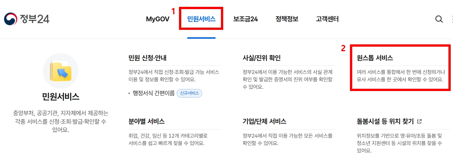 3. 정부24 -> 민원서비스 -> 원스톱 서비스