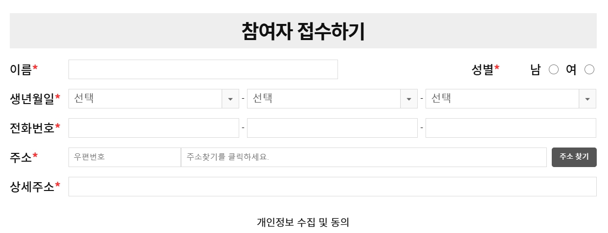 - 신청 화면에서 개인 정보와 필요 사항을 입력합니다.