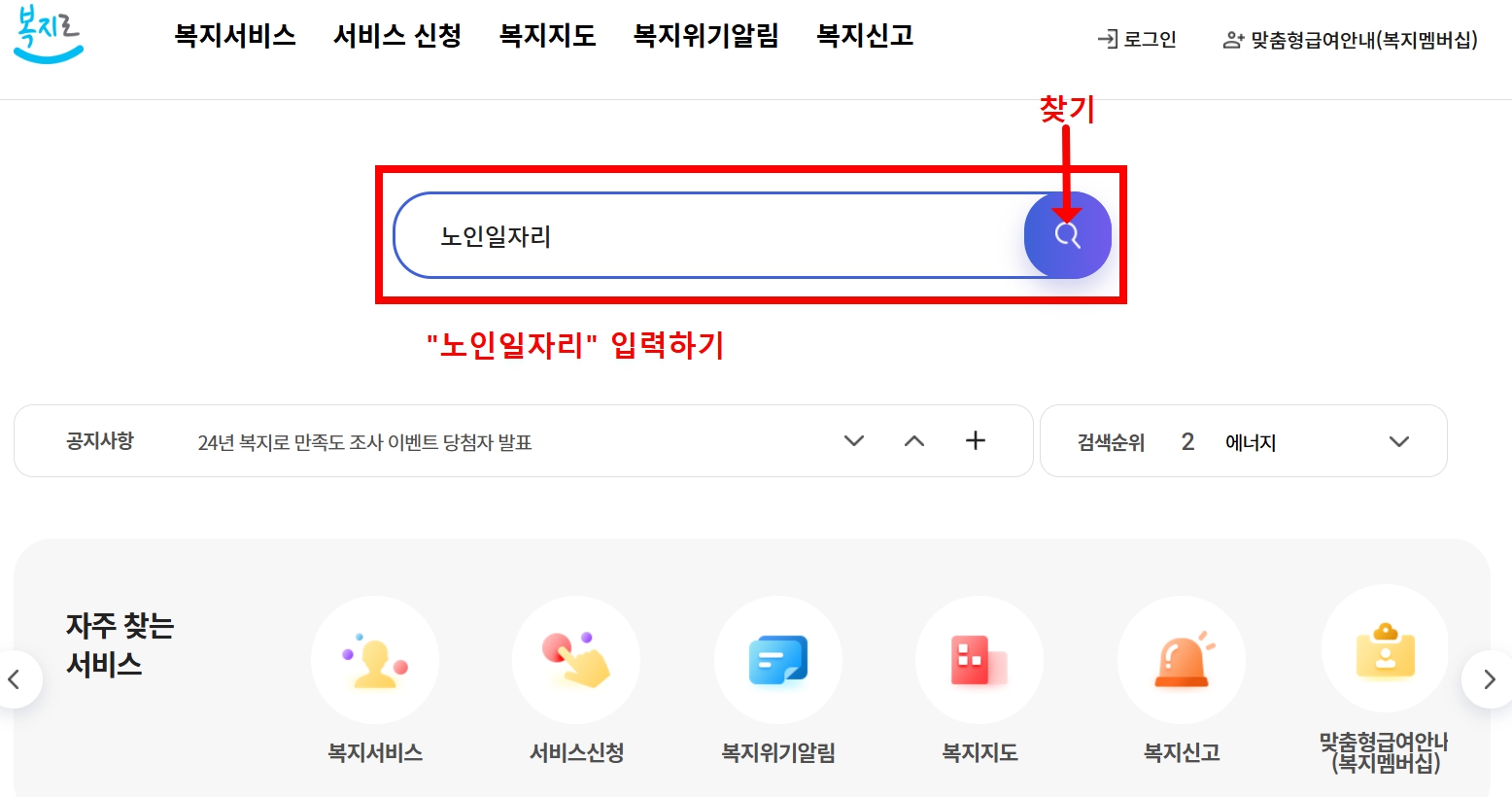 정부 통합 복지 플랫폼으로, 노인일자리사업 외에도 다양한 복지 정보를 제공합니다.
