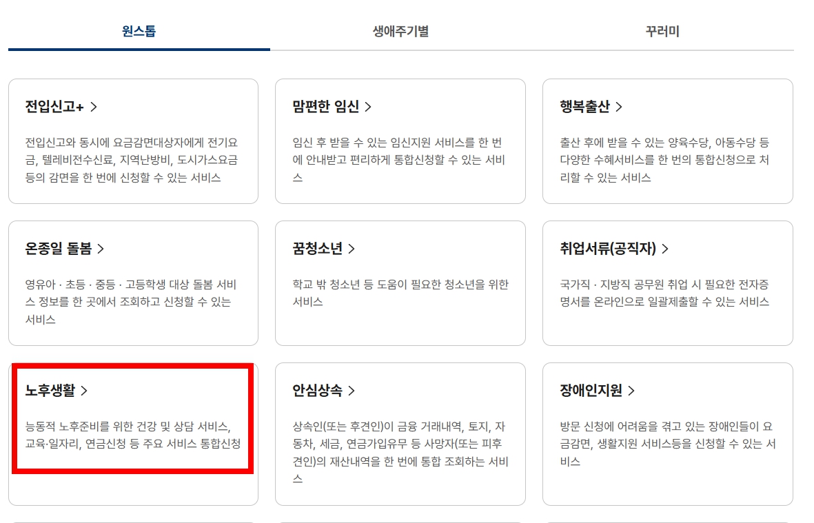 4. 원스톱/생애주기/꾸러미 서비스 -> 노후생활