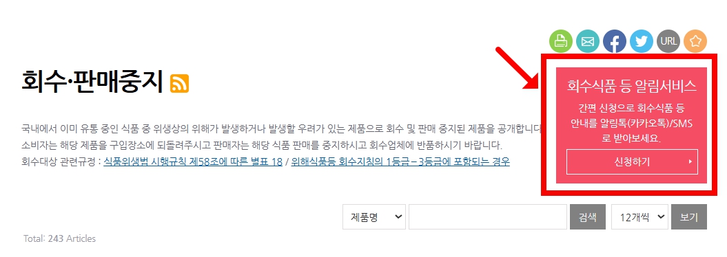 그래서 제가 오늘은 "회수식품 알림서비스"에 대해 소개해 드리려고 합니다.